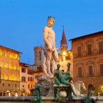 antigüedad. Es famosa por la Fuente de Neptuno, el Palazzo Vecchio, y el hermoso Piazzale degli Uffizi, así como el famoso Ponte Vecchio. Cena y alojamiento en Florencia.